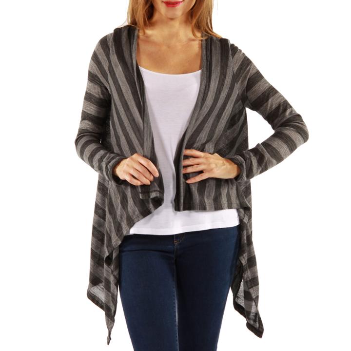 Comfort Apparel24/7 Comfort Apparel Women's Casual Charcoal Printed Shrug