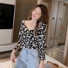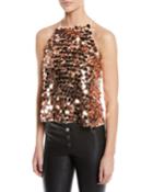 Munai3/4-sleeve Mesh-panel Sequined Top