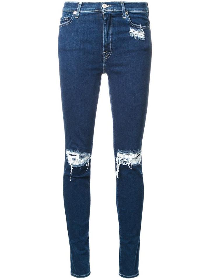 Blue cotton distressed skinny jeans from 7 For All Mankind. Size: 28. Color: Blue. Gender: Female. Material: Cotton/Modal/Polyester/Spandex/Elastane.