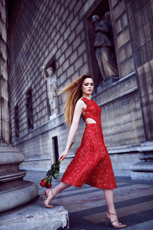 One of my favorite family photographs is a shot of my grandparents in Italy, both in matching trench coats. They each looked so effortlessly stylish and that image has long served as inspiration for me to always keep classic pieces in my wardrobe. We designed this trench coat with that in mind, adding a few special details to keep it current (like a leather collar and piping). It doesn't rain very often in L.A., but since it's a light color (with a pale pink satin lining that's perfect for spring) and lightweight, it's been the ideal piece for transitional weather.