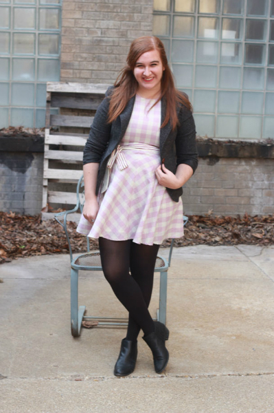 This is my third piece that the eShakti has sent me, and it's by far my favorite. As usual, there were a million things I wanted to choose, but the moment I laid eyes on this purple gingham number, I knew that it belonged in my life. As I'm sure you all know by now, eShakti has options to customize all of its clothing. I contemplated a couple of changes (such as adding sleeves or changing the neckline), but in the end, I decided that I actually the loved the dress as is and just opted to adjust the length. It ended up fitting like a glove, and I may never take it off. Gingham, lavender, AND fit & flare? It's basically my dream dress. It's been a while since I've worn this Brag Vintage blazer, so I figured this was the perfect opportunity to bust it out again. This was definitely one of those outfits that garnered a few "why is that girl so dressed up for class?" looks, but I don't care. Why would I wear sweats when I have such a pretty dress like this in my possession?
