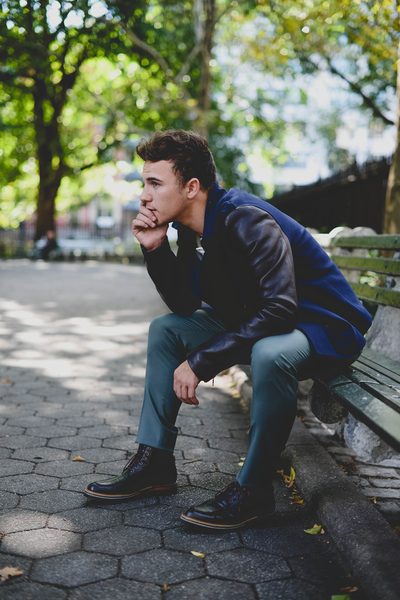 MACKAGE NAVY AND BROWN DOUBLE-BREASTED YALE VARSITY JACKET