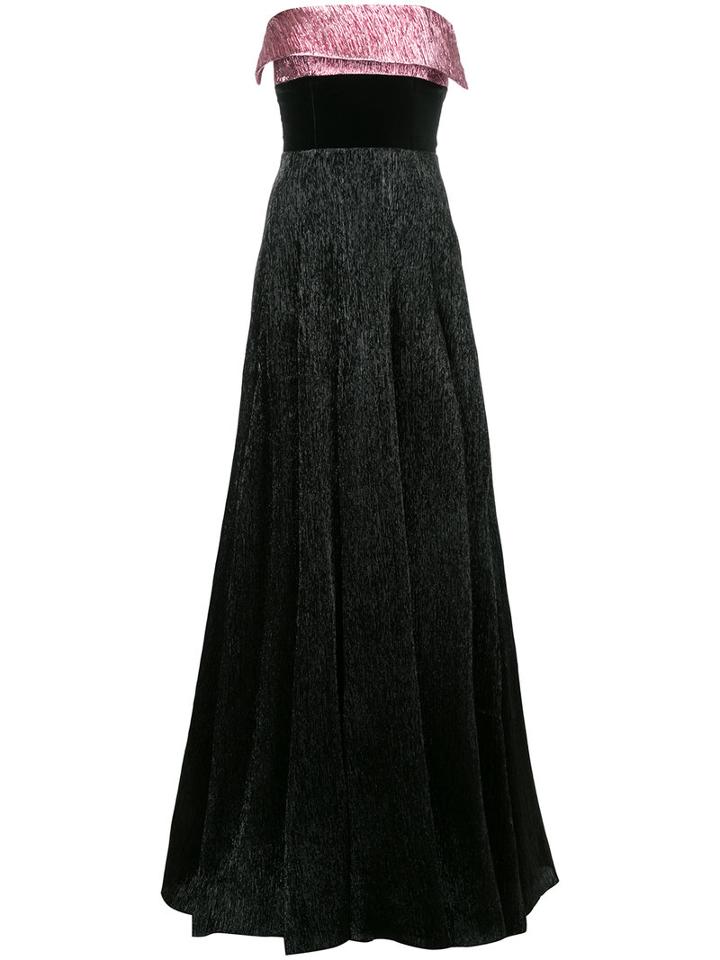 Black and pink Pierce dress from Alex Perry featuring a strapless design, a rear zip fastening and a flared skirt. Size: 8. Gender: Female. Material: Acetate/Rayon/Metallized Polyester.