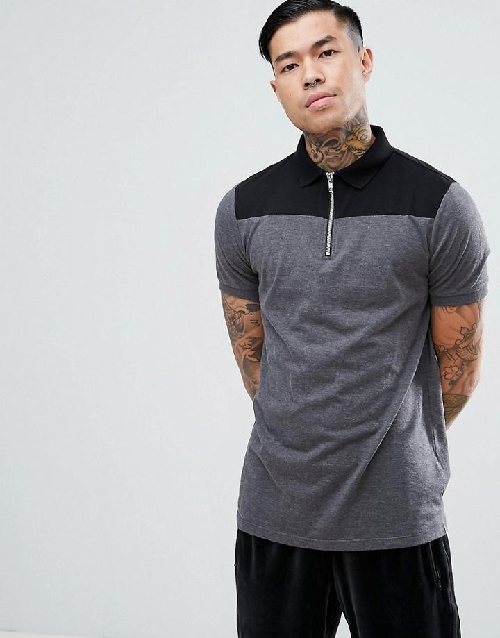 AsosAsos Contrast Panel Polo With Zip Neck - Multi