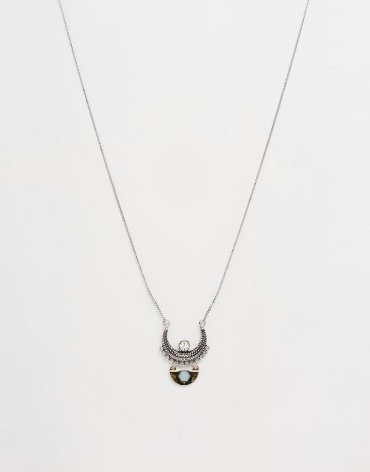 Necklace by ASOS Collection Silver-tone finish Fine chain Ornate pendant Jewel and gem stone embellishment Adjustable chain length Lobster clasp fastening 60% Zinc, 30% Brass, 5% Epoxy, 5% Glass