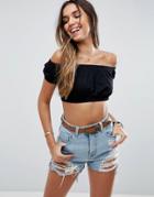 AsosAsos Off Shoulder Bandeau Crop In Print - Multi