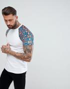 - Asos Longline Muscle T-shirt With Contrast Raglan Sleeves In Off-white/green - White