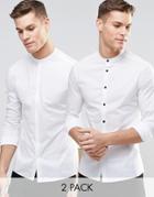 - Asos Skinny Shirt In White With Grandad Collar And Contrast Buttons In Short Sleeves - White