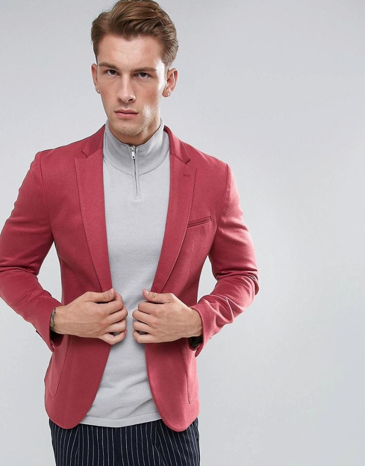 Asos DesignAsos Super Skinny Blazer In Burgundy Jersey - Red