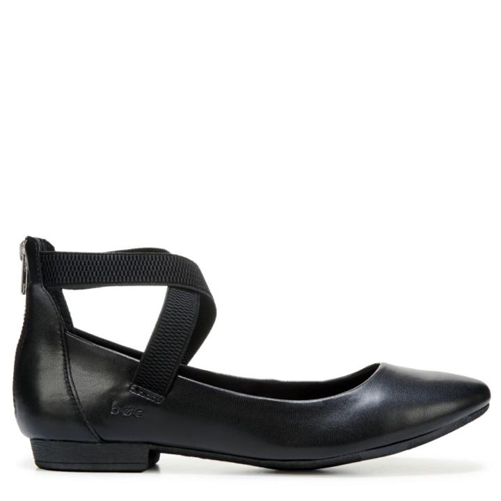 Update your go to look with the Beatrix Flat from B.O.C. Faux-leather upper in a flat style with a round toe Back zipper entry with elastic crisscrossing straps Logo details Smooth lining with comfort footbed Durable traction outsole,