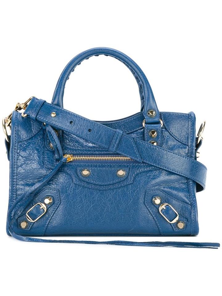 Blue cotton and lambskin removable strap tote from Balenciaga. Size: One Size. Gender: Female. Material: Cotton/Lamb Skin.