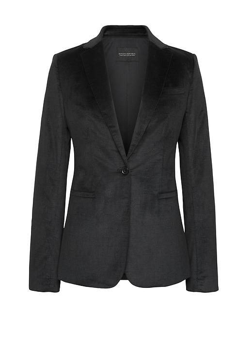 Made in a soft, stretch velvet fabric with Lycra DualFX technology, for amazing stretch that retains its shape. A lean and lengthening silhouette with one-button closure to accentuate the waist. Notch lapel. Long sleeves. Three exterior welt pockets. Center back vent. Fully lined with stretch lining for ease of movement. Long and Lean-Fit: Slim through the shoulder and sleeve, straight through the waist. Hits below the hip. Center back length (size 6): Petite 24, Regular 25. 5, Tall 27. 5Sleeve length: Petite 30. 75, Regular 32. 25, Tall 34. 5Coordinating Petite Suit Pant also available. Model: Size 2, 5'10 (178cm).