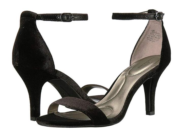 Give your evening ensemble an elevated boost with these chic barely-there sandals. Synthetic upper. Adjustable buckle strap at ankle. Open toe. Synthetic lining and footbed. Wrapped heel. Synthetic outsole. Imported. Measurements: Heel Height: 3 1 4 in Weight: 7 oz Product measurements were taken using size 8 width M. Please note that measurements may vary by size. Weight of footwear is based on a single item not a pair.