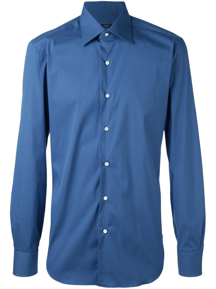 Blue stretch cotton slim-fit shirt from Barba. Size: 39. Color: Blue. Gender: Male. Material: Cotton/Polyamide/Spandex/Elastane.
