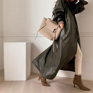 Naning9Belted Pleather Maxi Coat Khaki - One Size