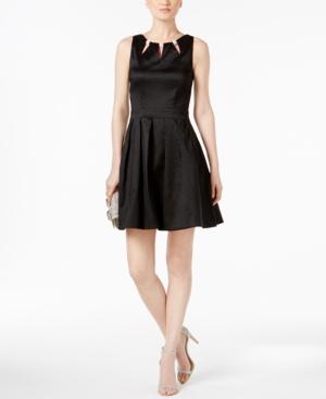 An embellished neckline adds a touch of glam to this fit & flare dress by Betsy & Adam.