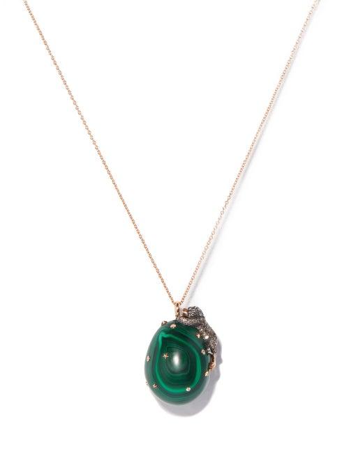 Bibi Van Der VeldenBibi Van Der Velden - Lion Diamond, Malachite & 18kt Rose-gold Necklace - Womens - Green Multi