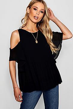BoohooBoohoo Amy Pleat Front Cold Shoulder Blouse