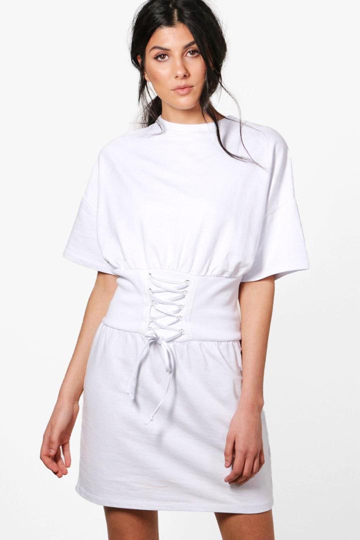 BoohooBoohoo Charlotte Corset Detail Short Sleeve Sweat Dress White