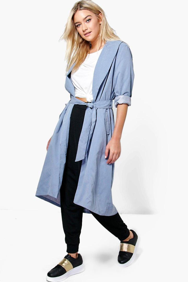BoohooBoohoo Grace Belted Lightweight Duster Denim-blue