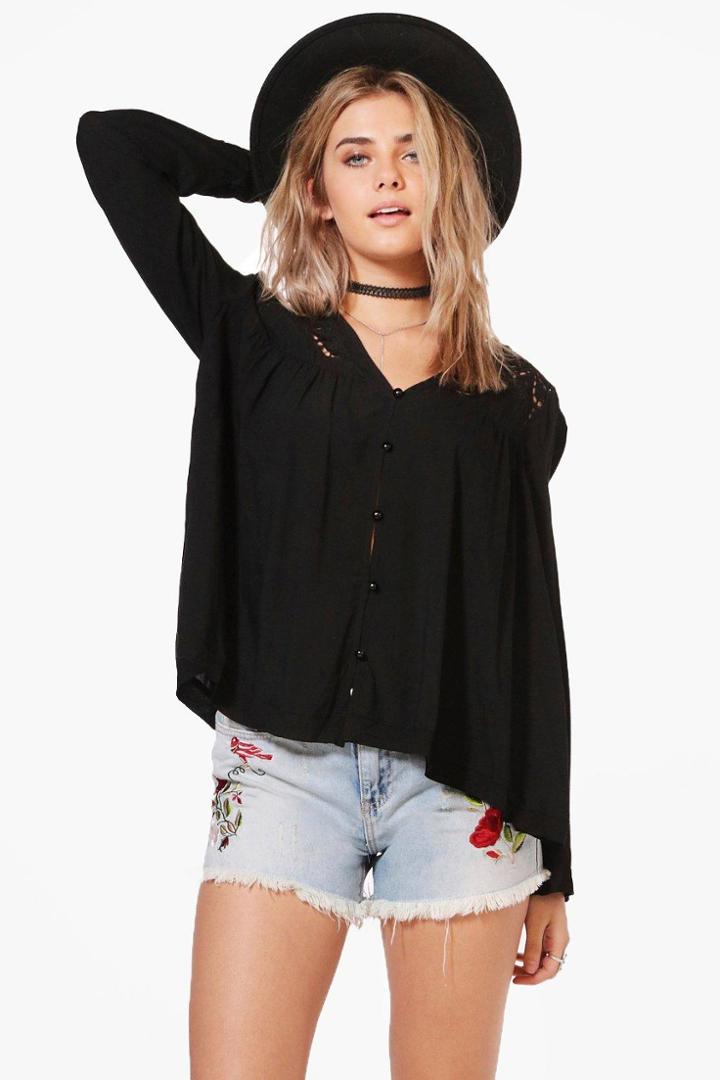 BoohooBoohoo Lizzie Cut Work Detail Button Through Blouse Black