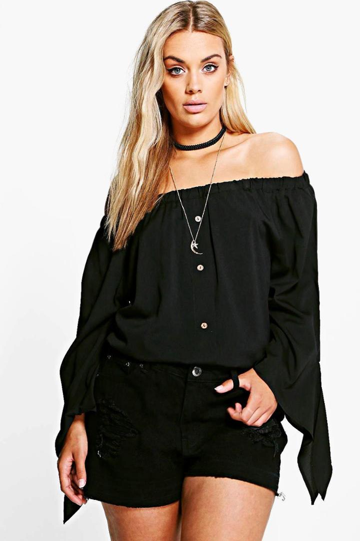 Boohoo Plus Amy Button Off Shoulder Top Black