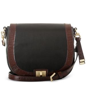 Luxe croc-embossed leather accentuates a classic Brahmin crossbody filled with thoughtful organization for essentials, from keys to wallet.