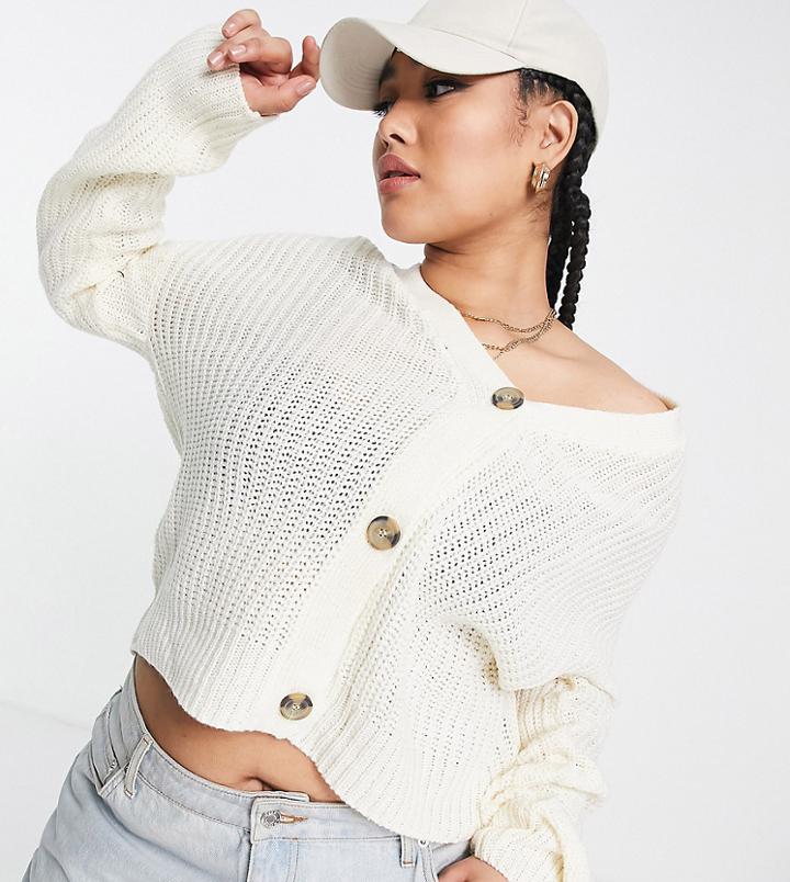 Plus-size cardigan by Brave Soul The soft stuff V-neck Button placket Drop shoulders Boxy fit
