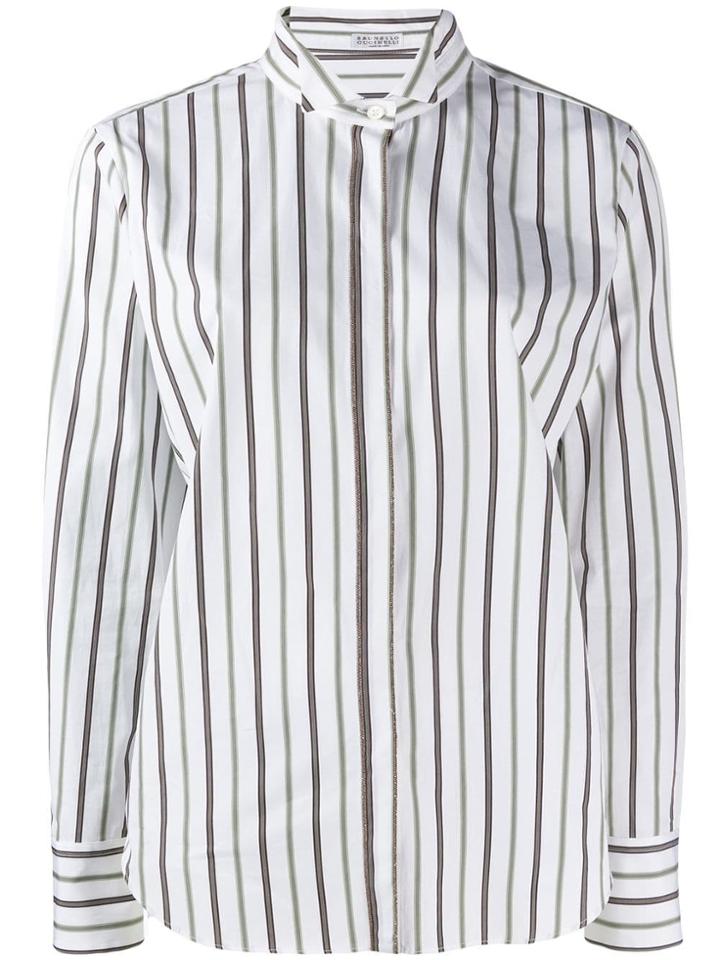 Brunello CucinelliBrunello Cucinelli Pinstripe Tailored Shirt - White