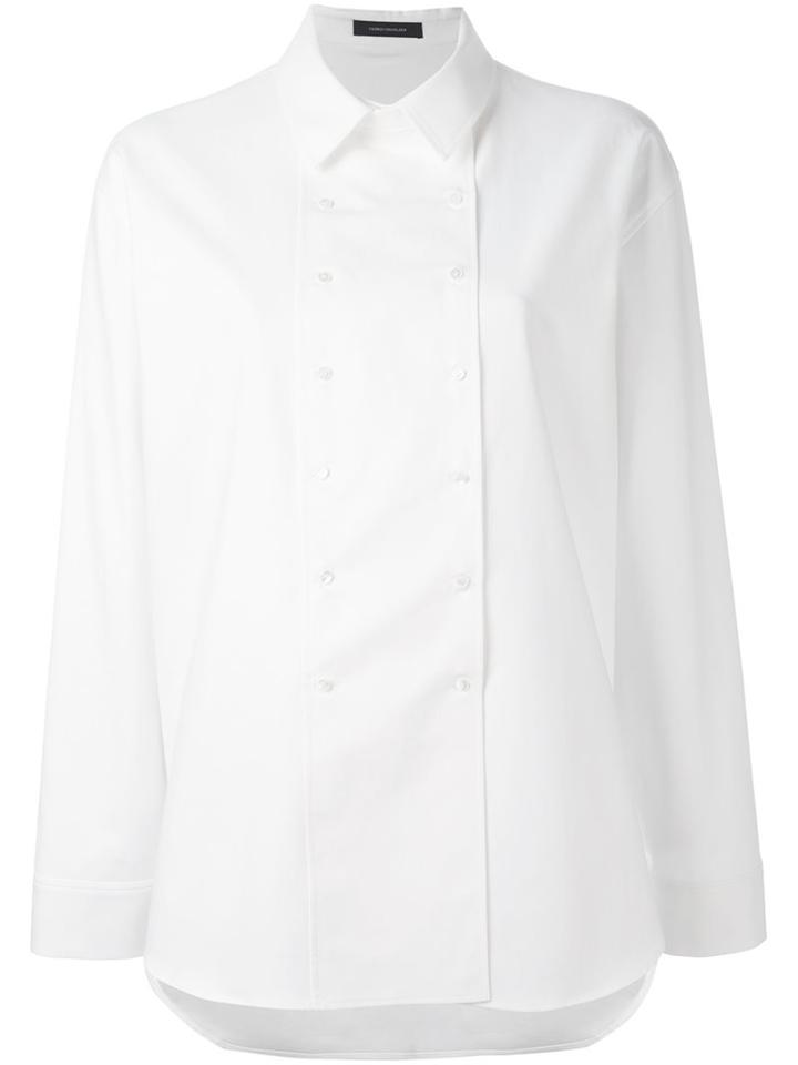 White cotton blend double breasted shirt from Cdric Charlier. Size: 36. Gender: Female. Material: Cotton/other fibers.