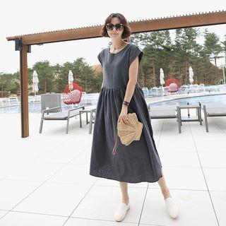 LemiteCap-sleeve Frill-trim Maxi Flare Dress