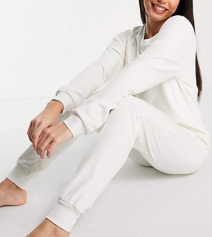 Chelsea PeersChelsea Peers Tall Super Soft Fleece Lounge Sweatshirt And Sweatpants Set In Cream-white