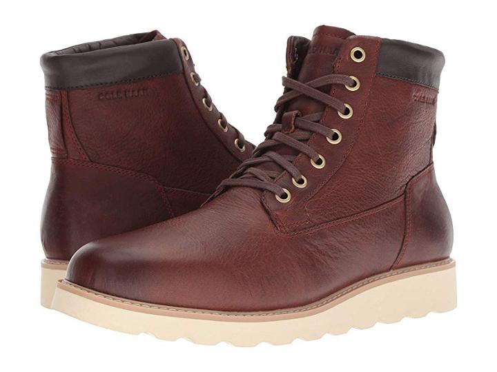 Put your best foot forward with this Cole Haan Nantucket Rugged Plain Boot. Leather upper. Lace-up construction with metal eyelets. Round toe. Textile insole and lining. Rugged and sturdy man-made sole. Man-made sole. Imported. Measurements: Weight: 1 lb Shaft: 6 1 2 in Product measurements were taken using size 11.5 width D - Medium. Please note that measurements may vary by size. Weight of footwear is based on a single item not a pair.