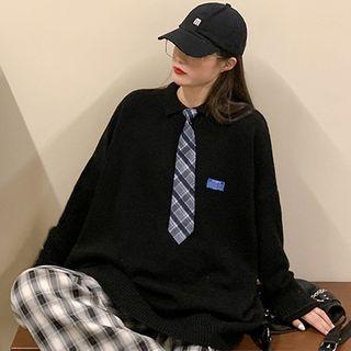WhoasabiCollared Pullover / Plaid Wide-leg Pants