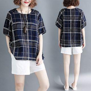 ShalalaColor-block Crewneck Plaid Short-sleeve T-shirt