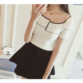 AshleeContrast Trim Knit Short Sleeve Top