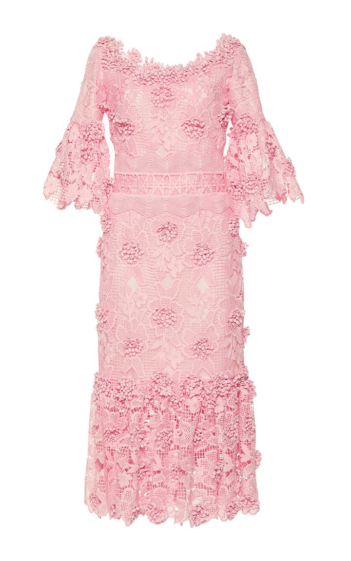 CostarellosCostarellos Ruffled Blossom Lace Midi Dress
