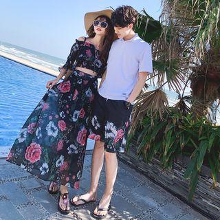 Bonne NuitCouple Matching Short-sleeve Polo Shirt / Floral Print Shorts / Elbow-sleeve Top / Midi Skirt