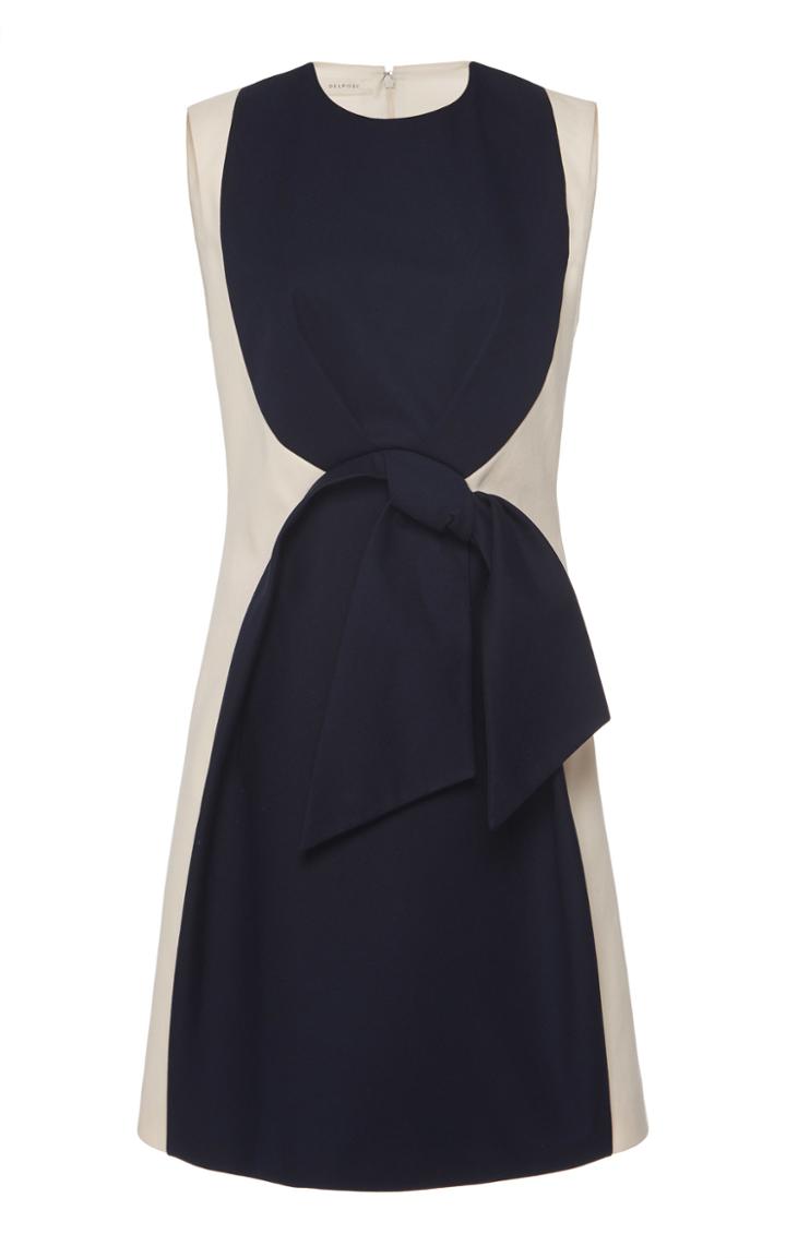 This *Delpozo* Bicolor Bow Mini Dress features a gathered bow tie waistline and a mini length design.