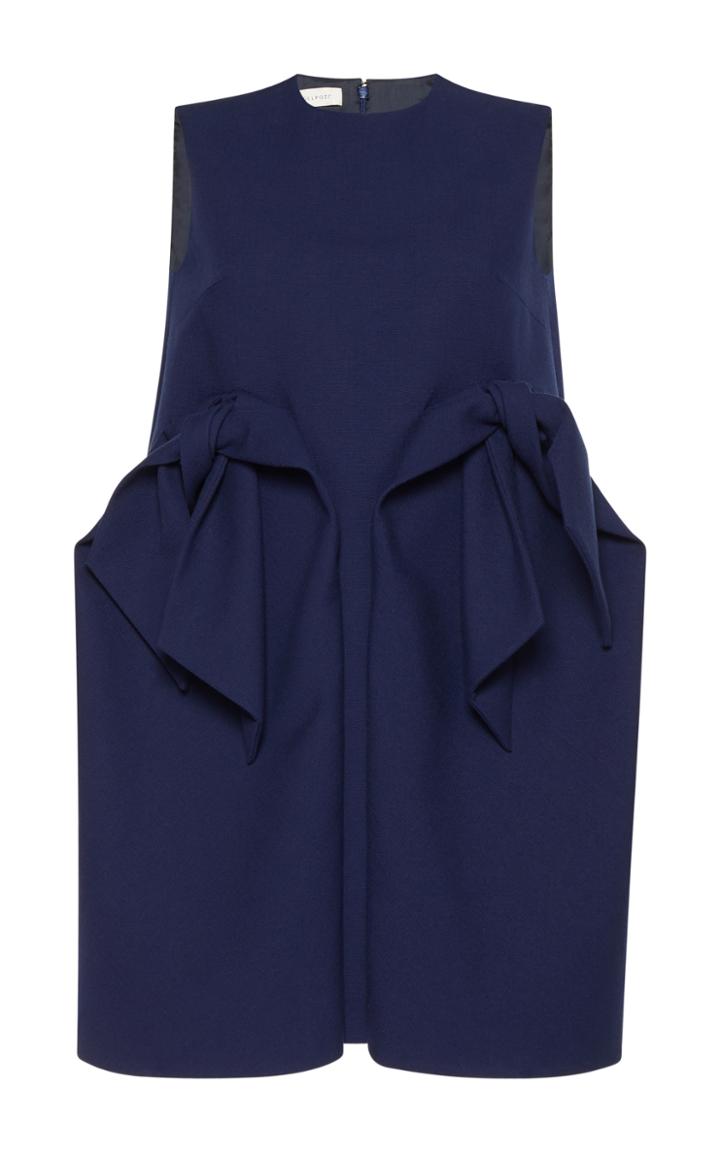 This sleeveless *Delpozo* dress features a crew neckline a fitted bodice and bows at the front.