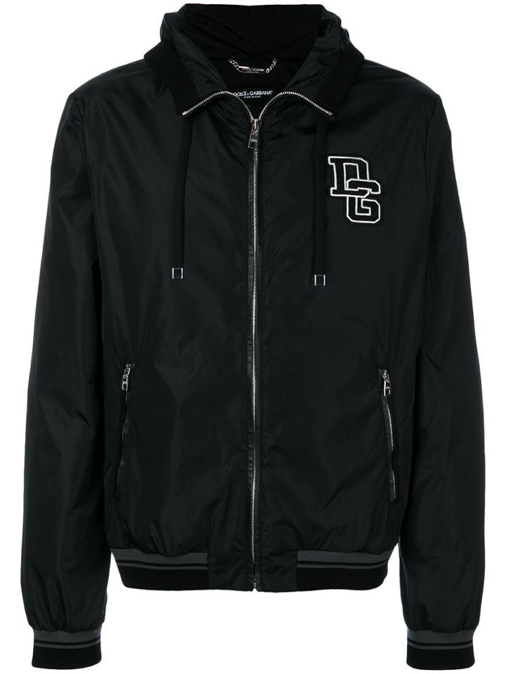 Dolce & GabbanaDolce & Gabbana Hooded Bomber Jacket With Logo Patch - Black