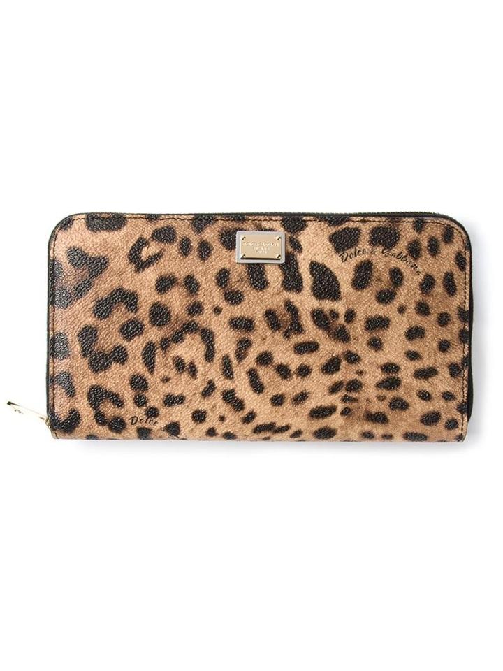 Brown leopard print zip wallet from Dolce & Gabbana featuring an all around zip fastening, a gold-tone logo plaque, an internal zipped pocket, multiple card slots and a bank notes section.