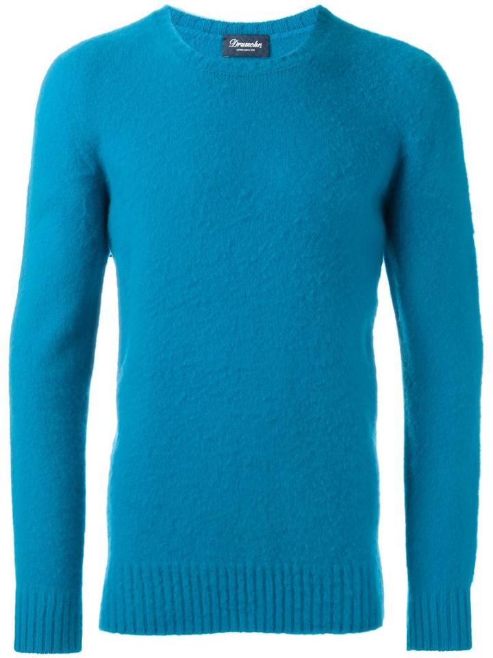 Blue lamb wool crew neck jumper from Drumohr. Size: 50. Gender: Male. Material: Lambs Wool.