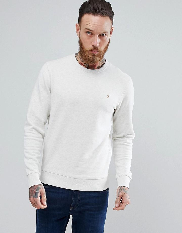 FarahFarah Tim Slim Fit Crew Neck Sweat In Off White - White