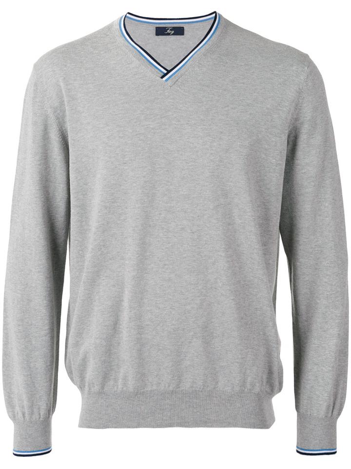 Grey cotton v-neck jumper from Fay. Size: 56. Color: Blue. Gender: Male.