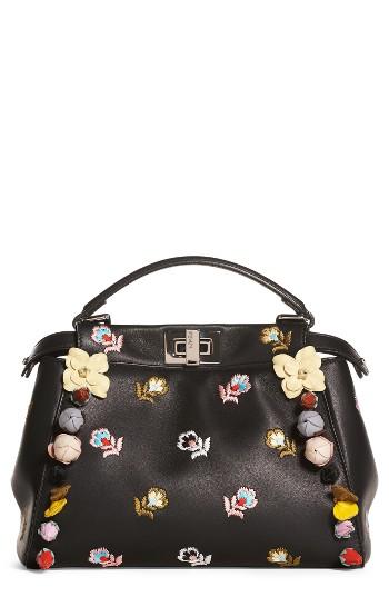 FendiFendi Mini Peekaboo Floral Applique Leather Satchel -