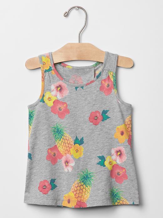 Gap Soft jersey. Tank straps with slight shirring. Round neckline. Overlapping back panels. Allover floral pineapple print. 100% Cotton.