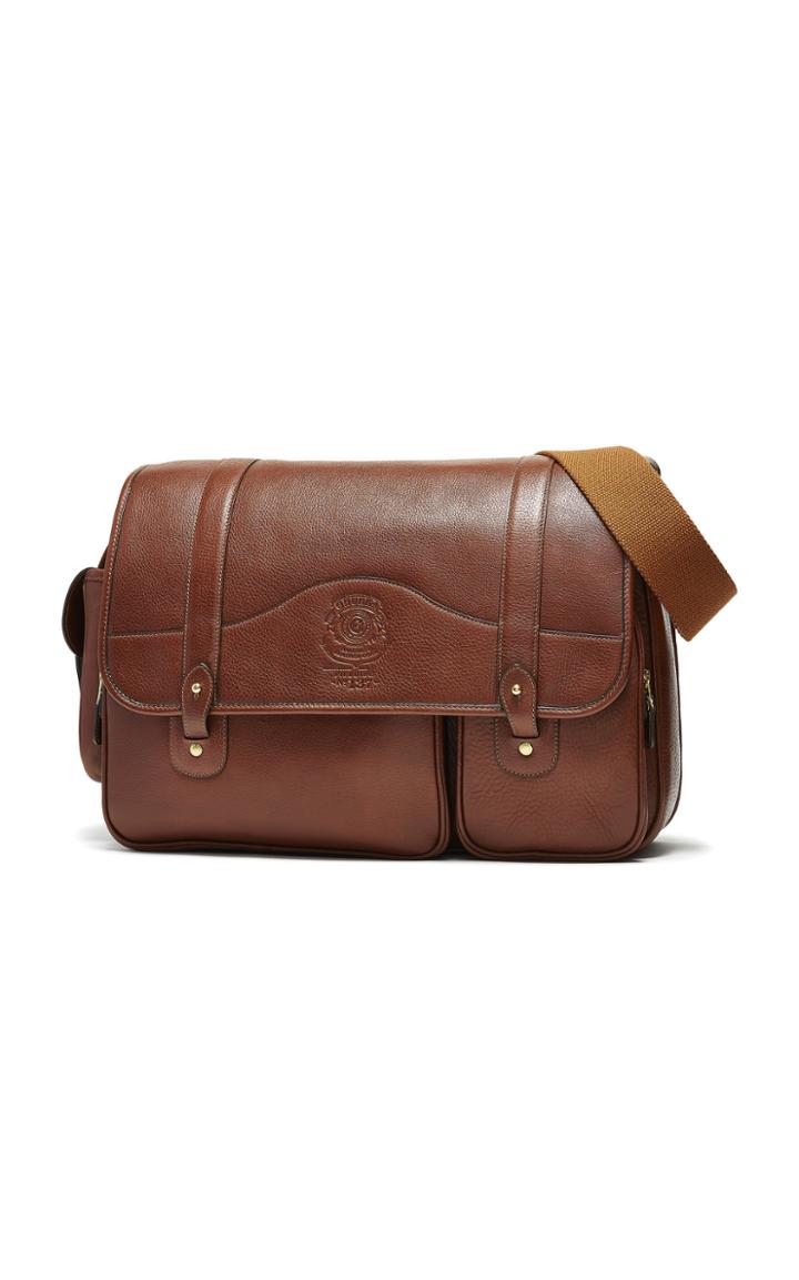 This *Ghurka* Fielding Messenger Bag is rendered in bovine leather and features an elegant curve features a versatile leather messenger bag silhouette and brass hardware.