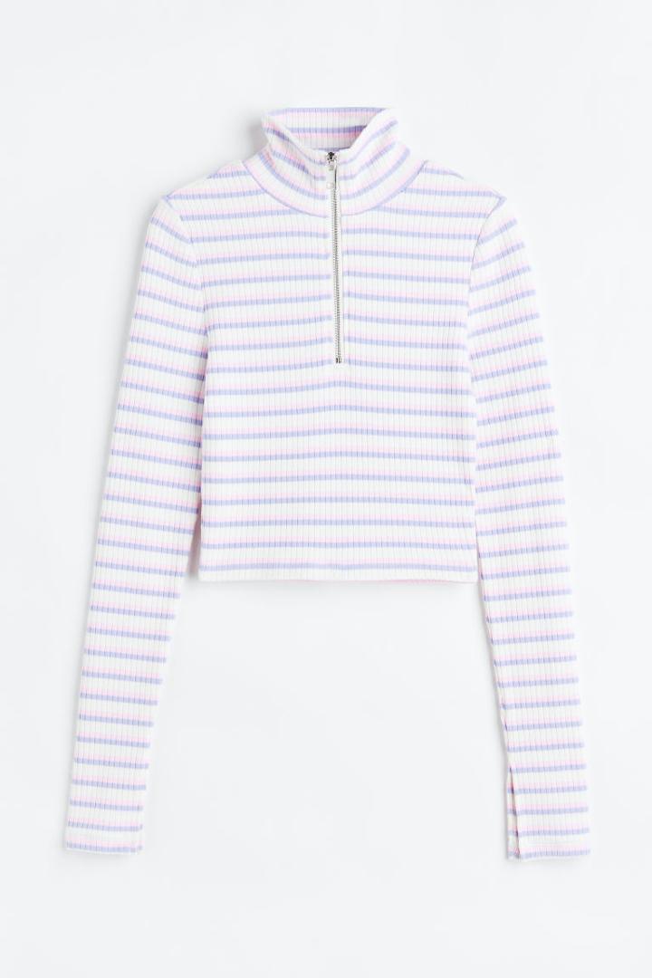H & MH & M - Half-zip Rib-knit Top - Pink