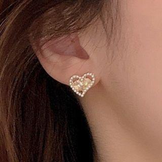 TinseltownHeart Faux Pearl Rhinestone Stainless Steel Earring 1 Pair - Eh46 - Gold & White - One Size